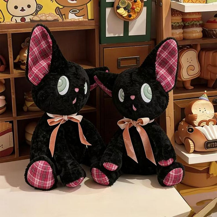 Cet adorable jouet en peluche chaton qui écoute aux portes est disponible dans une correspondance de couleurs classique noir et rose. La partie la plus spéciale sont ses oreilles : une oreille est grande et l'autre est petite. Cette conception asymétrique rend notre chaton différent des autres jouets pour chats courants sur le marché. Il est superbe pour les photos, constitue un joli cadeau et fonctionne également bien comme décoration à la maison.