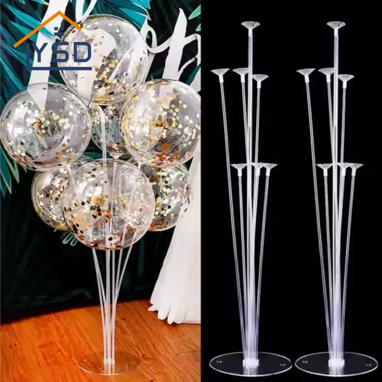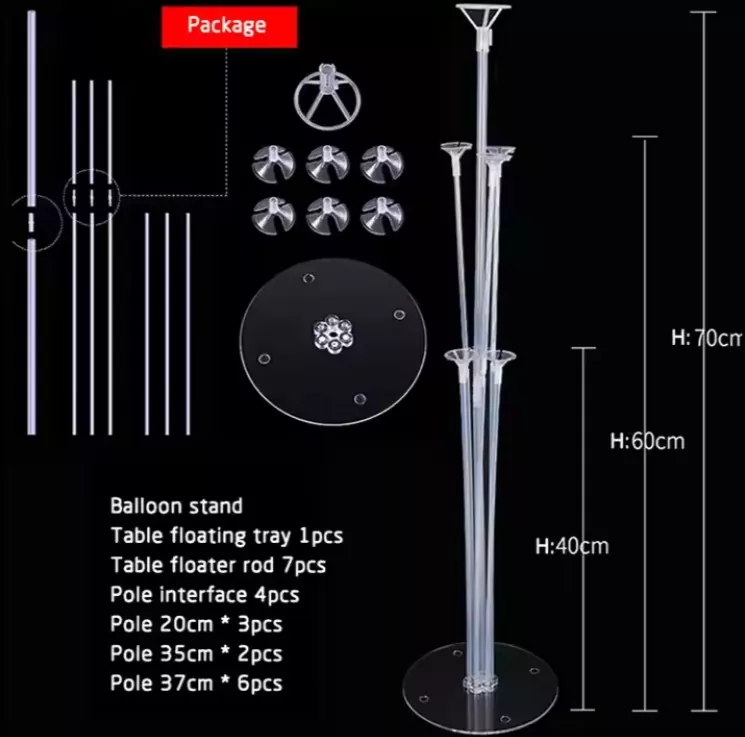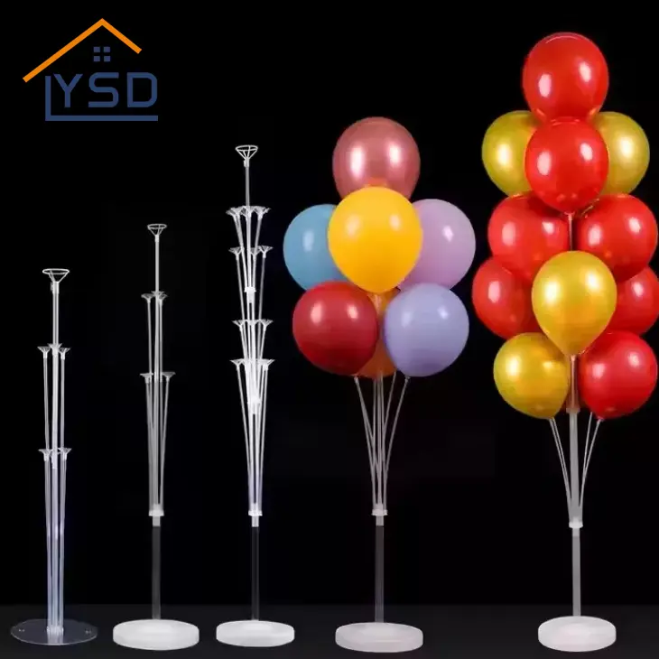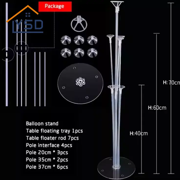 Le support de ballon est généralement transparent. Les ballons empilés ont tendance à avoir l'air rigide. Le support de ballon transparent de YSD n'est pas seulement une hauteur. Il y a différentes longueurs dans un ensemble de support de ballon. Par exemple, le meilleur que nous vendons est une combinaison de 70 cm, 60 cm et 40 cm. Il y a un 70 cm, 3 60 cm et 3 40 cm. Ils sont combinés avec des ballons pour rendre les ballons dispersés et ordonnés. Cet effet "échelonné" est entièrement réalisé par ces peuplements transparents de différentes longueurs.