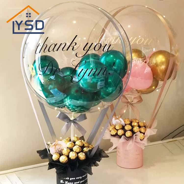 La décoration de Bobo Balloon est faite de matériaux TPU de haute qualité, il présente les avantages de la durabilité, de la protection de l'environnement, de la forte plasticité et des formes de longue durée et diverses. Pour acheter des décorations de fête de haute qualité, YSD® se concentre sur la recherche et le développement de ballons TPU Bobo, fournit des conceptions riches et prend en charge la personnalisation et les commandes en vrac.