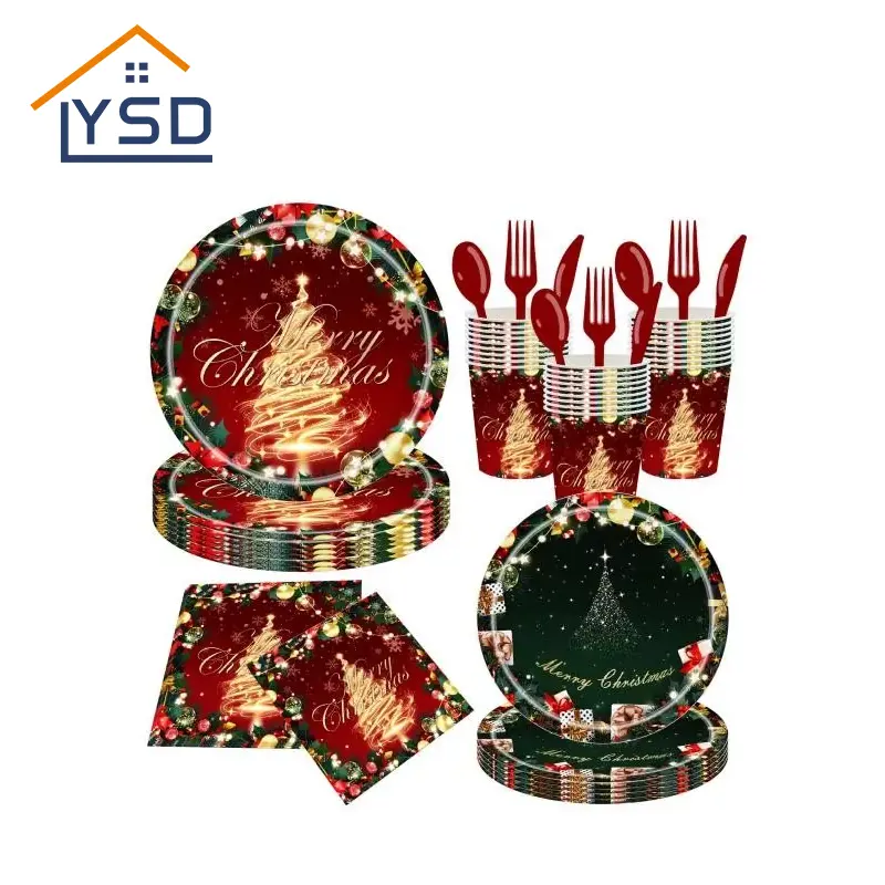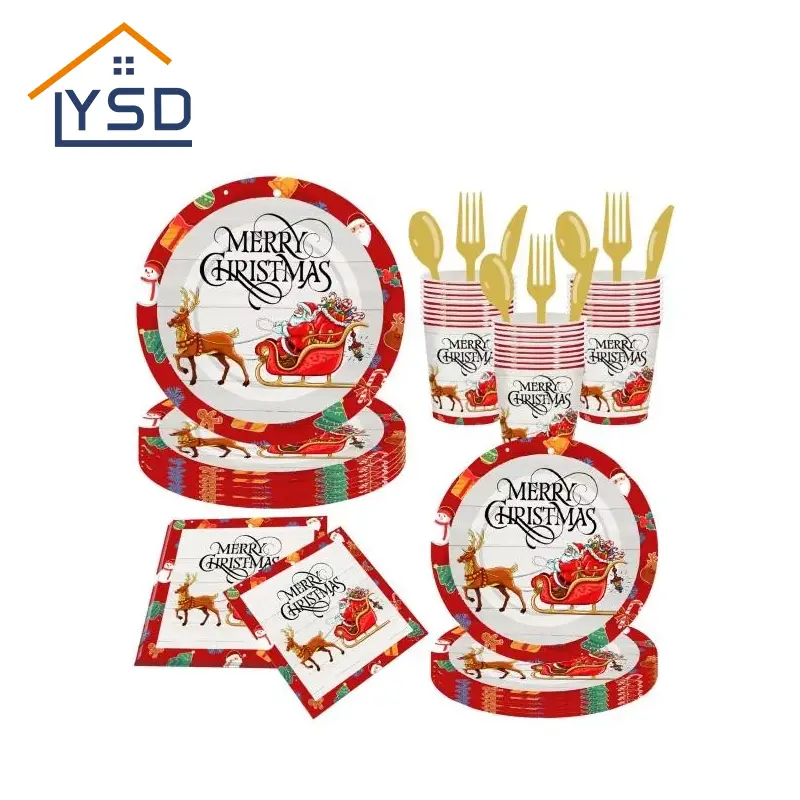 Avec les célébrations de Noël en abondance, la propreté efficace et l'atmosphère festive sont tout aussi importantes. Les ensembles de vaisselle jetables de Noël sont la solution idéale, combinant des éléments festifs avec commodité et sécurité, réduisant considérablement les tâches ménagères. La commande de cet ensemble fournit un ensemble complet d'assiettes, de couverts, de cuillères et de serviettes festives conçues, ce qui en fait un choix sans tracas pour les rassemblements de famille et la restauration. YSD est spécialisé dans la production de vaisselle jetable sur le thème des vacances de haute qualité et offre une offre fiable et à volume élevé.