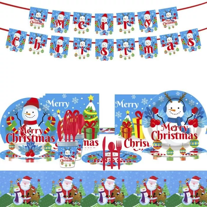 Le choix d'un ensemble de vaisselles jetables de Noël conçu spécifiquement pour Noël atténue efficacement la corvée du nettoyage après les festivités. Ces ensembles comprennent généralement des assiettes, des couverts, des cuillères, des tasses et des serviettes avec des motifs classiques comme les arbres de Noël, les flocons de neige, les rennes ou les cadeaux. Ces ensembles sont uniformément coiffés et jetables après une seule utilisation, éliminant le besoin de lave-vaisselle approfondie et permettant aux hôtes et aux invités de se concentrer davantage sur le profit de la saison des fêtes.
