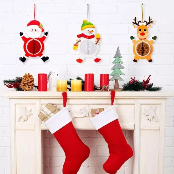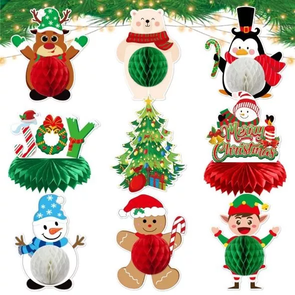 Nos ornements en nid d'abeille de Noël présentent une structure en nid d'abeille tridimensionnelle. Lorsqu'ils sont placés à plat, ils apparaissent aussi minces qu'une feuille de papier, mais se déplient pour révéler une toute nouvelle dimension, créant des conceptions de Noël vibrantes et riches. Au-delà des éléments familiers du Père Noël, des arbres de Noël et des bas de Noël, de nombreux nouveaux éléments ont été incorporés. Ces nouveaux éléments sont accrocheurs, uniques et élèvent instantanément la saison de Noël.