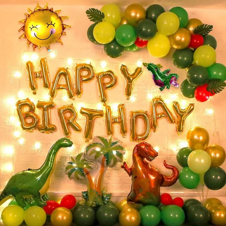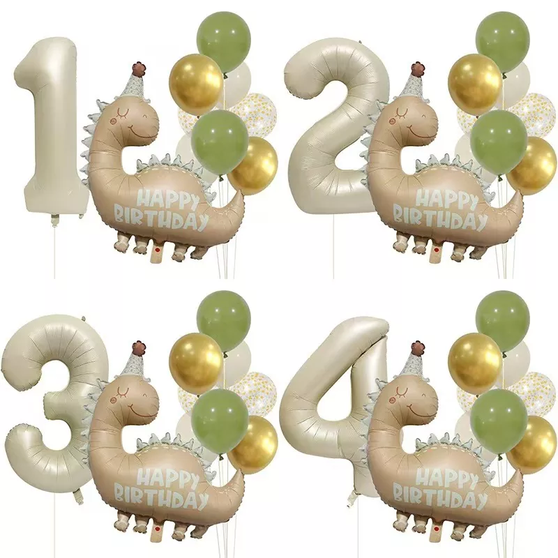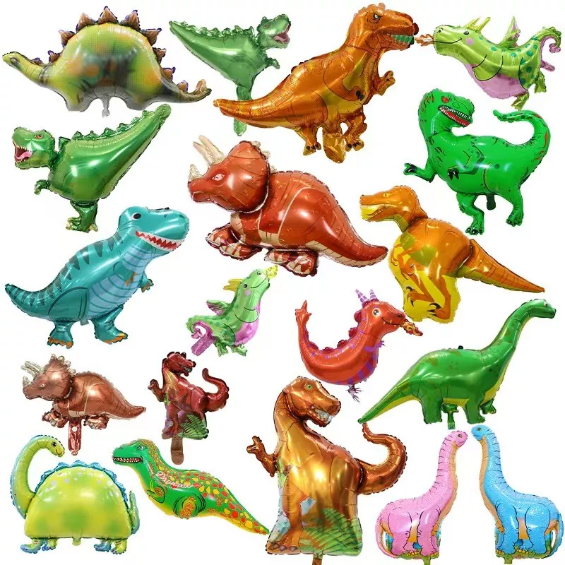 Les ensembles de ballons de dinosaures ont généralement une combinaison de ballons en papier d'aluminium en forme de dinosaure et de ballons en latex, ou seulement un seul ballon en feuille en forme de dinosaure, et il y a aussi des dinosaures imprimés sur des ballons en latex. Il existe de nombreux styles.