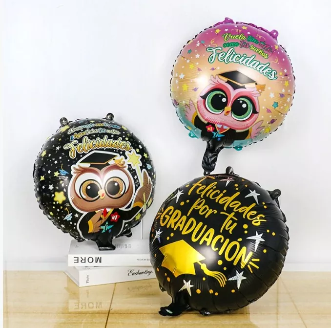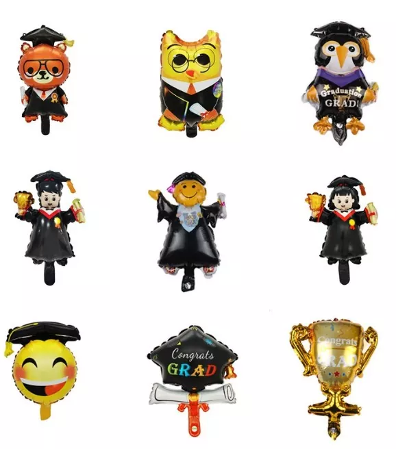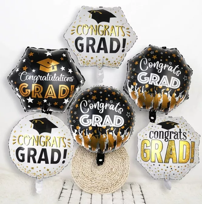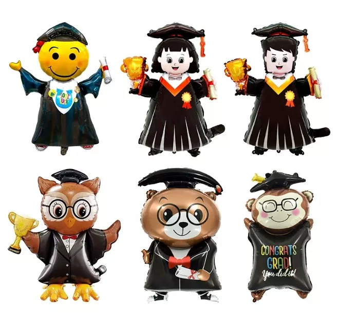 Les ballons en feuille de graduation sont généralement faits de papier d'aluminium léger avec un éclat métallique. La surface est recouverte d'un film lumineux qui peut refléter la lumière et présenter un effet accrocheur. Les tailles communes varient de 12 pouces à 36 pouces, répondant aux besoins de la suspension ou du placement de plancher dans différents espaces. La surface peut être imprimée avec des modèles de capuchon de graduation clairs, des mots à thème de «graduation», des logos d'année et soutient fortement les emblèmes scolaires personnalisés, les devises scolaires ou les bénédictions spécifiques, qui sont d'une grande valeur commémorative.