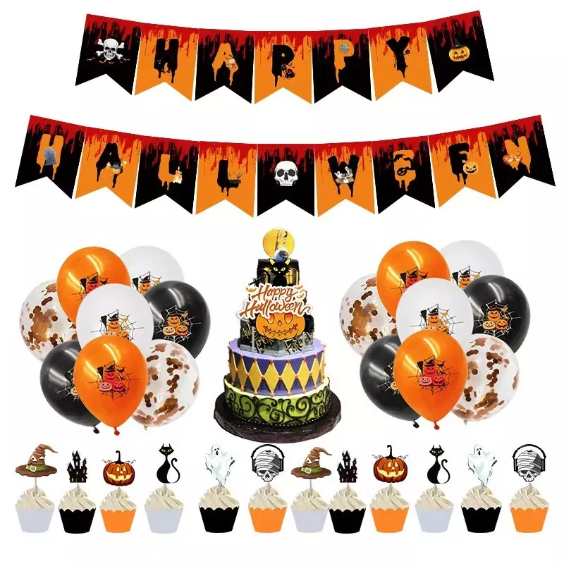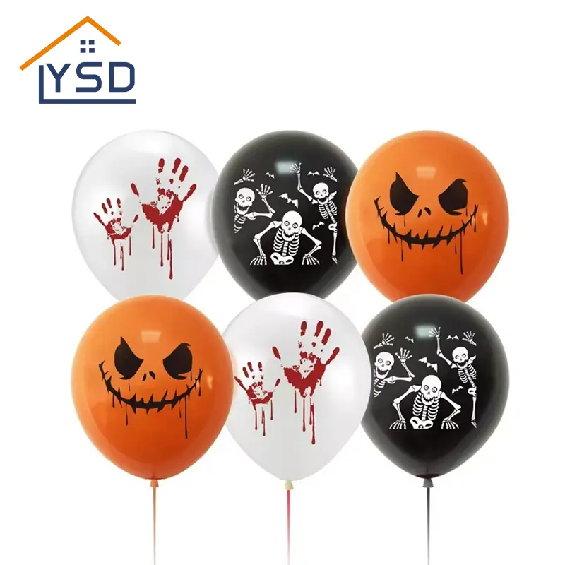 2. Certains ballons en latex sont imprimés avec des motifs d'éléments d'Halloween tels que des citrouilles, des chauves-souris, des crânes, des araignées, etc.
