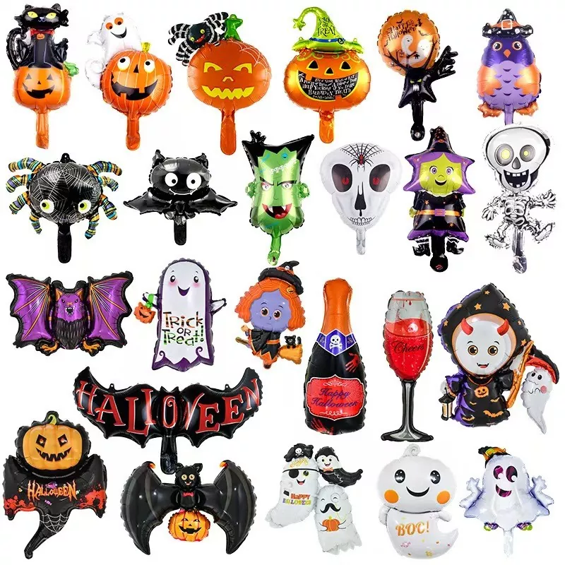 1. Ballons en papier d'aluminium: en matériaux de lustre métalliques, tels que les crânes, les chauves-souris, les citrouilles et autres formes, avec une taille allant jusqu'à 40 pouces (environ 100 cm). Il a une conception automatique d'étanchéité et prend en charge l'inflation flottante de l'hélium (de 6 à 14 heures) et une inflation manuelle pour une utilisation répétée.