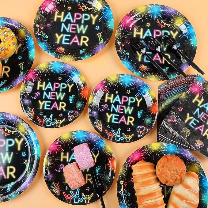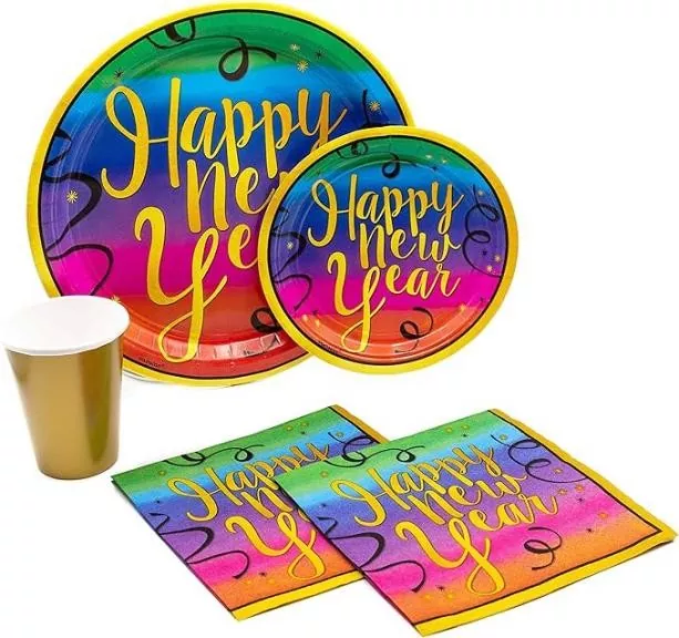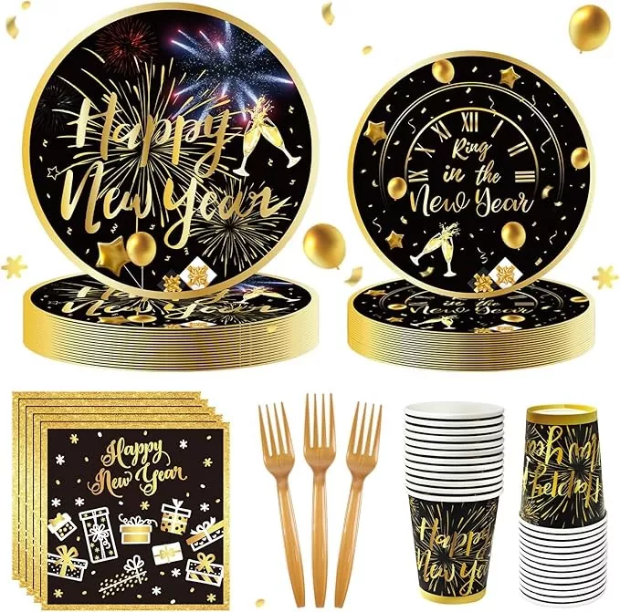 L'ensemble de vaisselle jetable sur le thème du Nouvel An convient également à une variété d'occasions. Par exemple, si vous recevez de la famille et des amis pour le dîner du réveillon du Nouvel An, faire la vaisselle peut prendre beaucoup de temps lorsqu'il y a beaucoup de monde. Avec cet ensemble, vous n'avez pas besoin de faire la vaisselle par la suite et le nettoyage ne prend qu'une demi-heure, permettant à chacun de passer plus de temps à discuter. Pour une réunion annuelle d'une petite entreprise ou un dîner départemental de fin d'année, si vous commandez des plats à emporter ou apportez votre propre nourriture, l'utilisation de cet ensemble de vaisselle crée une atmosphère plus festive que l'utilisation de contenants à emporter classiques, et les employés ressentiront la prévenance de l'entreprise en mangeant.