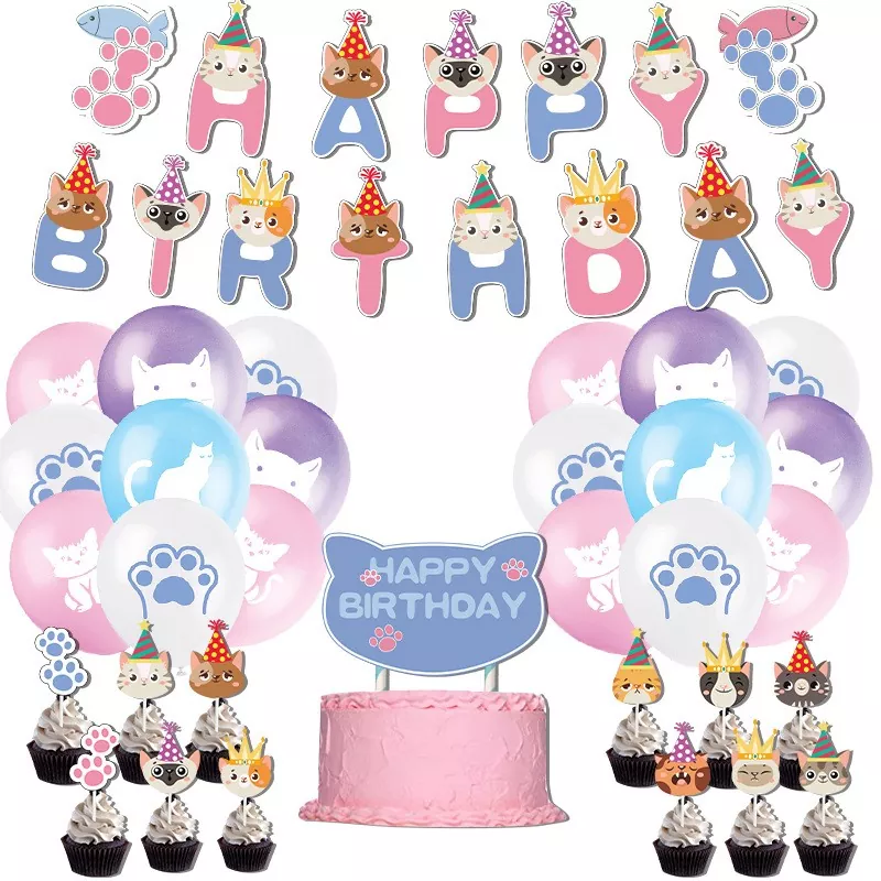 **Différents styles sont plus que de simples mots. ** De la première chose que vous voyez en entrant (le panneau de bienvenue thématique) aux chaînes de ballons sur le fond, aux fanions suspendus, aux chemins de table, aux décorations de gâteaux, aux assiettes et aux gobelets en papier, et même aux coffrets cadeaux sur le thème des chats pour les invités, nous avons tout prévu pour vous. Nous avons pris soin de tout ce que vous avez imaginé, et nous avons également pris en compte même les choses que vous n'avez pas imaginées. Nous proposons véritablement « un guichet unique, des arrangements sans tracas ».